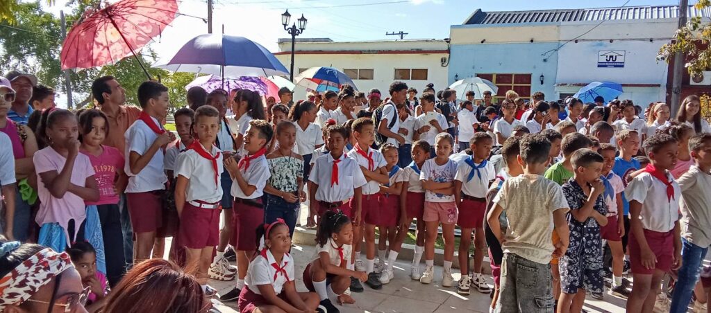 Este dos de abril, pioneros y jóvenes de Caimanera celebraron, en el parque José Martí de la localidad, el acto municipal por los aniversarios 65 de la Organización de Pioneros José Martí (OPJM) y 64 de Unión de Jóvenes Comunistas (UJC).
