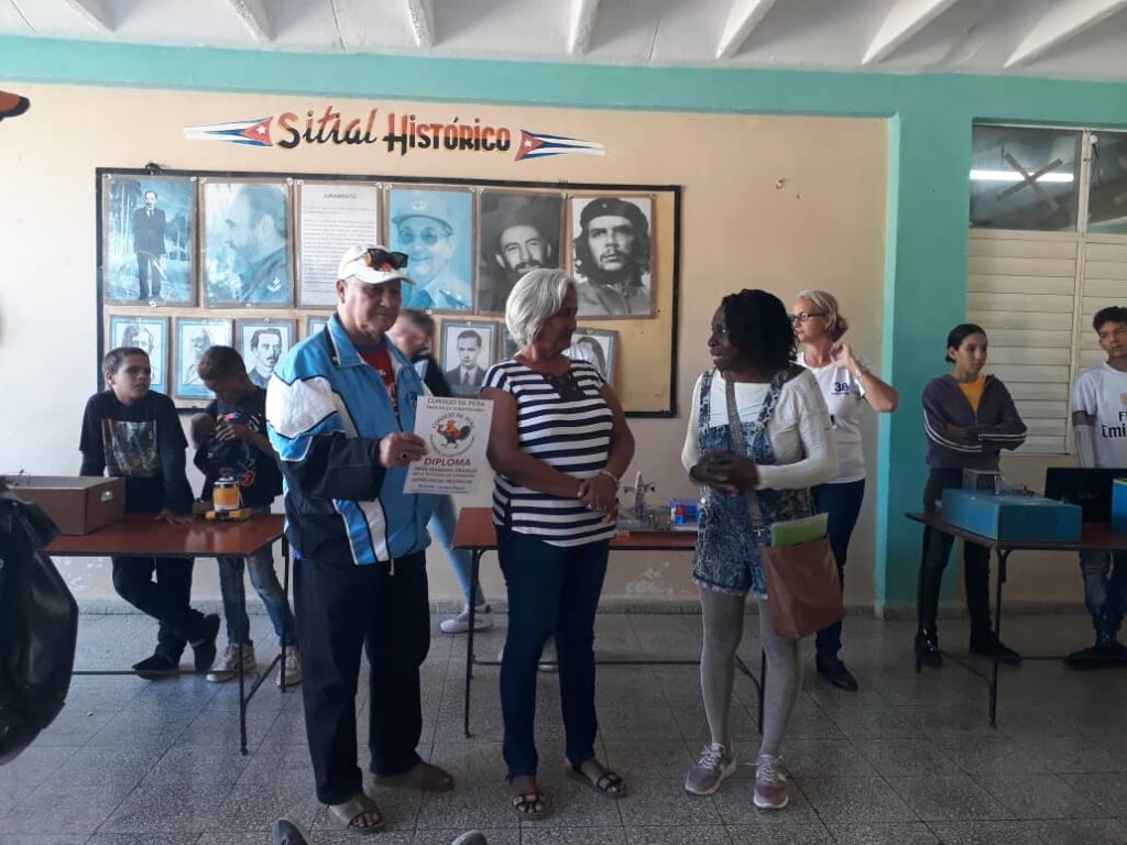 Como parte de las actividades colaterales del encuentro, Rolando Cervera Rigal El director de la peña provincial “El Gallo” hizo entrega de un Diploma a Bárbara Choo Pérez directora del taller textil de Caimanera por su participación activa en las diferentes actividades.