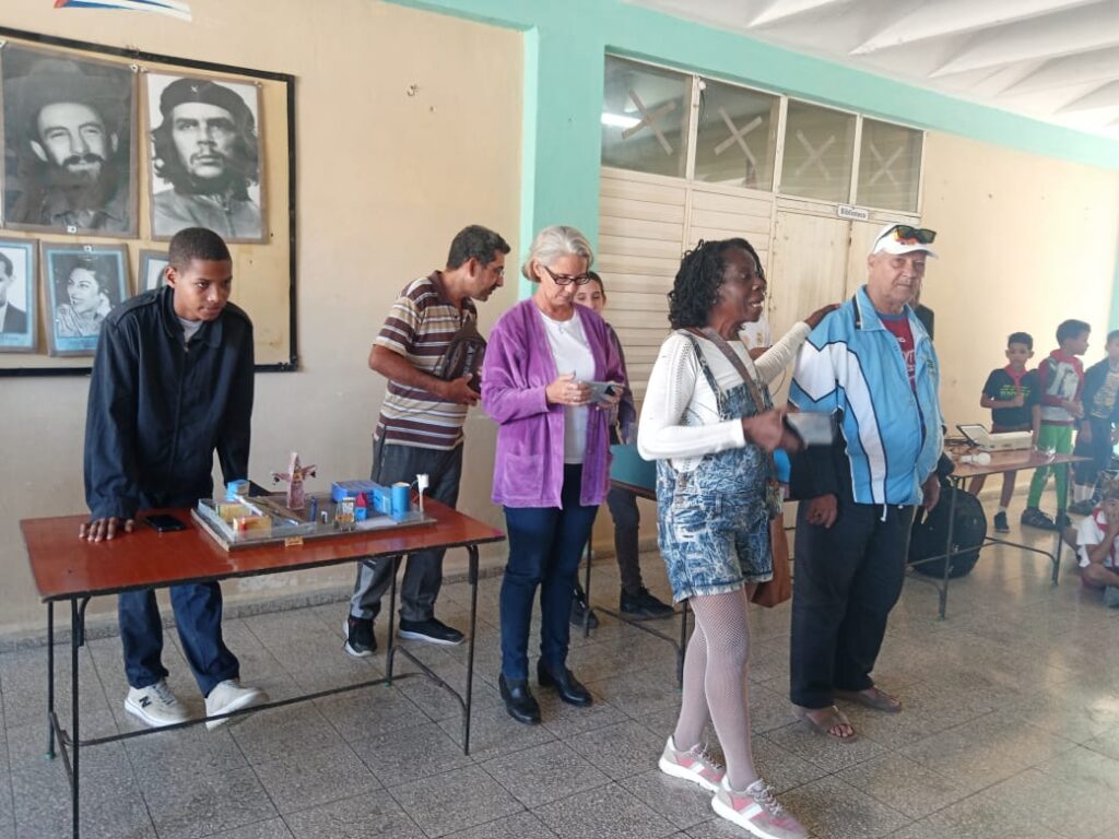 En la exposición de los trabajos los estudiantes defienden sus innovaciones con orgullo, tal es el caso de Raidel Lambert Noa, estudiante del instituto Politécnico Diomedes Córdoba Arredondo: “Mi trabajo es una maqueta de un parque solar fotovoltaico. Con los paneles solares en un parque solar fotovoltaico nosotros podríamos consumir una energía limpia y saludable así ahorraremos en el consumo de petroleo y otros recursos. Presento además un transformador, un inversor, un extintor, un tanque elevado de agua y un transformador. En fin, es una inventiva de energía renovable”.